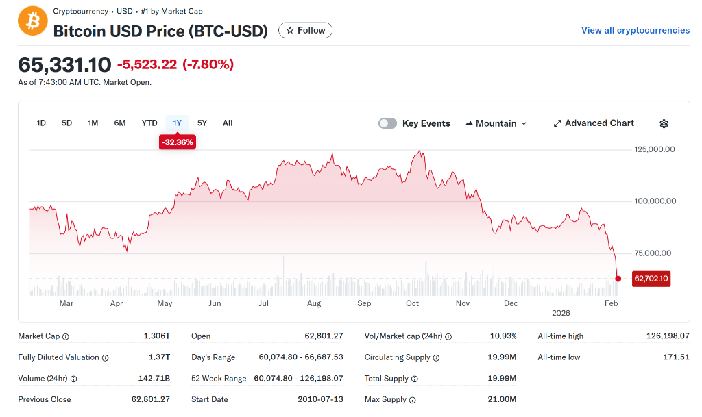 价格方面,IBIT一度跌破35美元,为2024年10月11日以来最低水平。该基金价格曾在去年10月初触及71.82美元的峰值,此后持续下跌。作为全球最大的公开上市比特币基金,IBIT持有实物比特币,旨在镜像追踪比特币现货价格。比特币周四一度跌至近6万美元。
