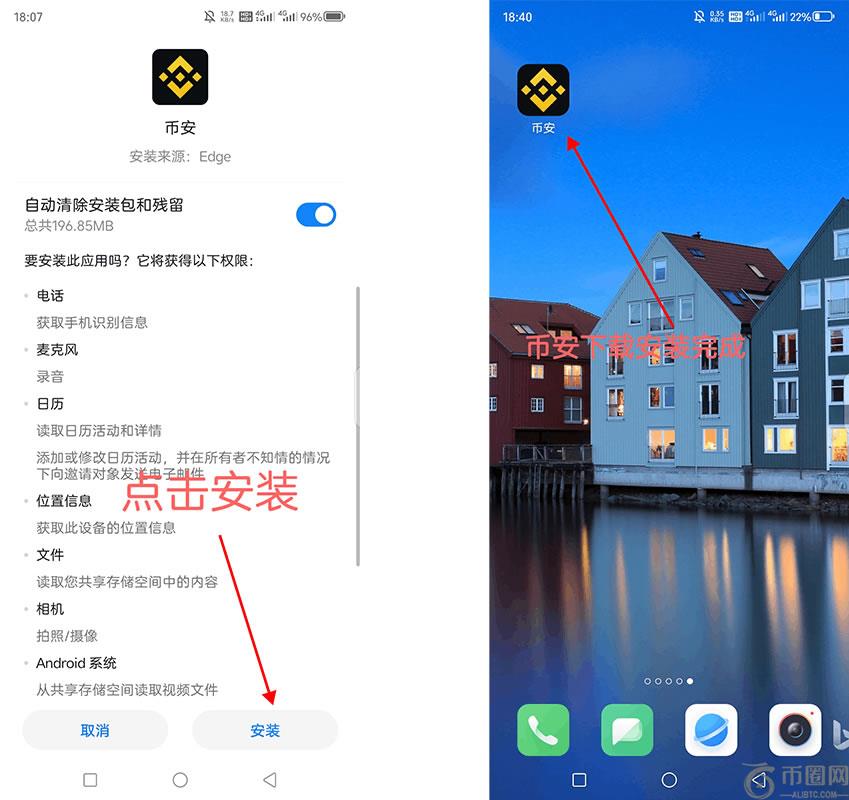 不同品牌的安卓手机进行下载时,路径等方面会有所不同,请按照相应提示完成下载、安装。如果不是用手机浏览器扫码,则可能需要点击右上角图标,选择【在浏览器打开】,再点击【本地下载】—【下载】,按要求完成下载、安装。 方法二:通过链接下载币安App请务必通过官方渠道下载App,除了在币安官网扫码进行下载之外,你也可以复制以下链接到浏览器中打开,然后完成下载、安装。