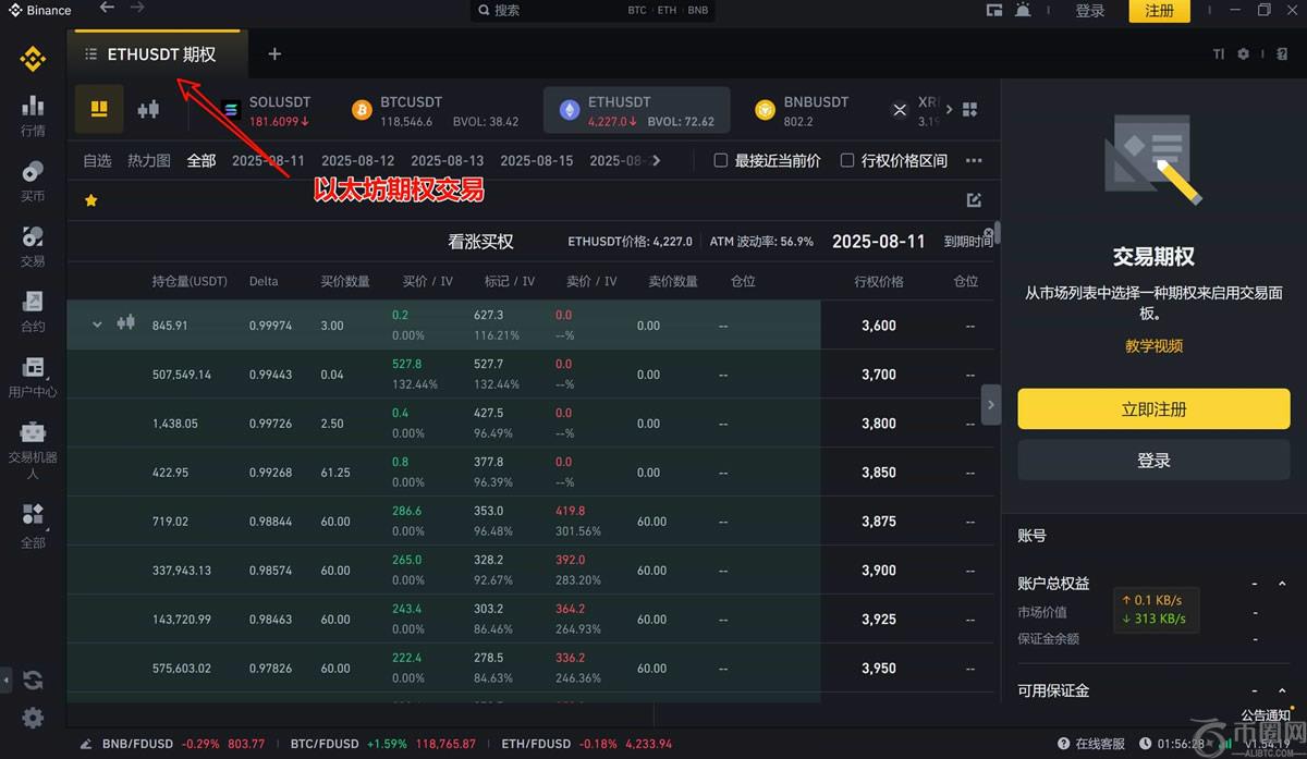 欧式期权:提供看涨期权和看跌期权,用户支付权利金获得在未来特定日期以特定价格买入或卖出标的资产的权利(非义务)。