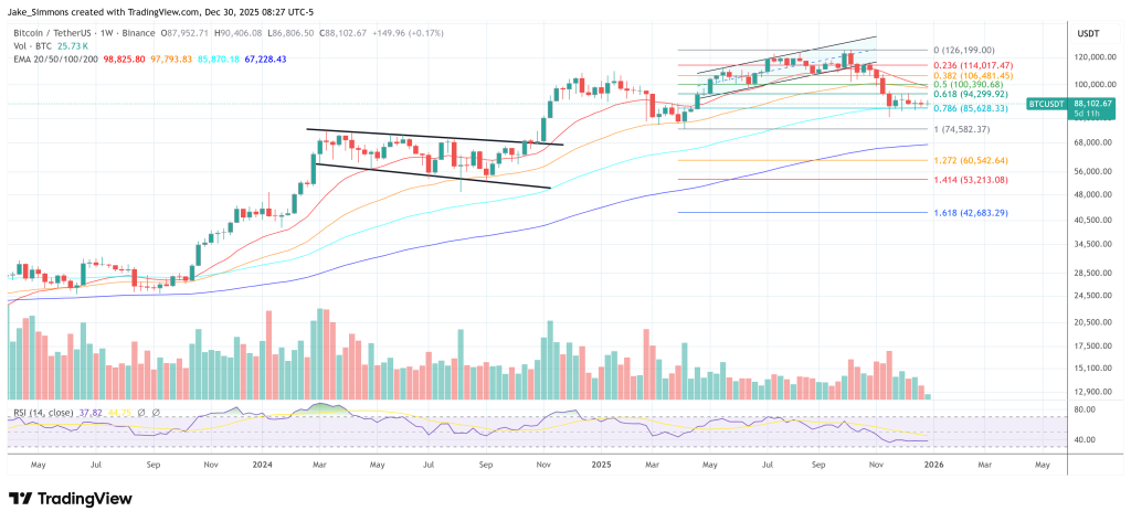 比特币价格维持在 0.618 和 0.786 斐波那契回调位之间,一周走势图 | 来源: