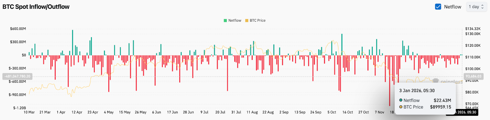 比特币净流量(来源:Coinglass)
