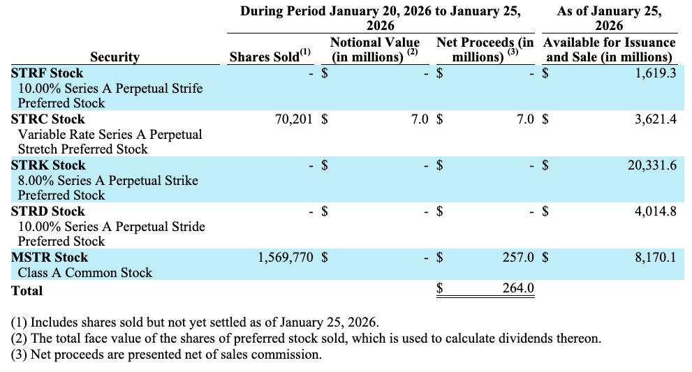 Strategy上周MSTR和STRC出售详情。来源:美国证券交易委员会
