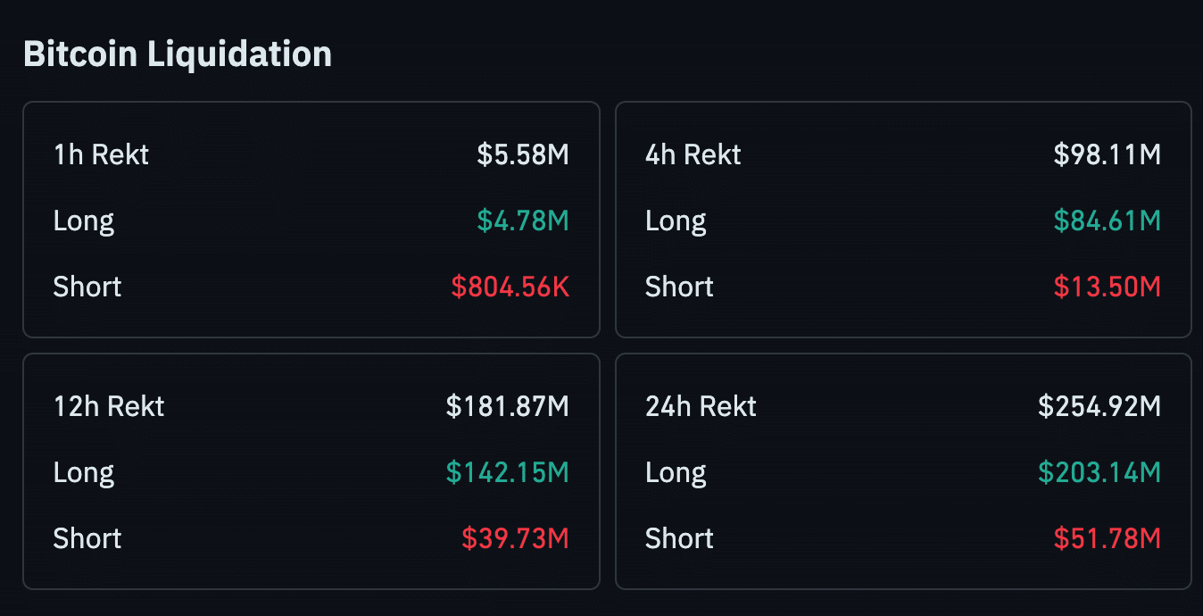与此同时,在过去24小时内,总计比特币清算总市值达到2.5492亿美元,其中多头头寸为2.0314亿美元,空头平仓额为5178万美元。这证实了市场在抛售期间对多头头寸进行了严厉惩罚。