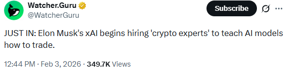 xAI 加密货币专家招聘信号人工智能进入交