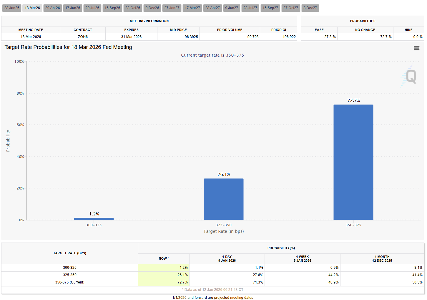 市场预期美联储3月份降息的可能性仅为27%。根据 FedWatch 工具.