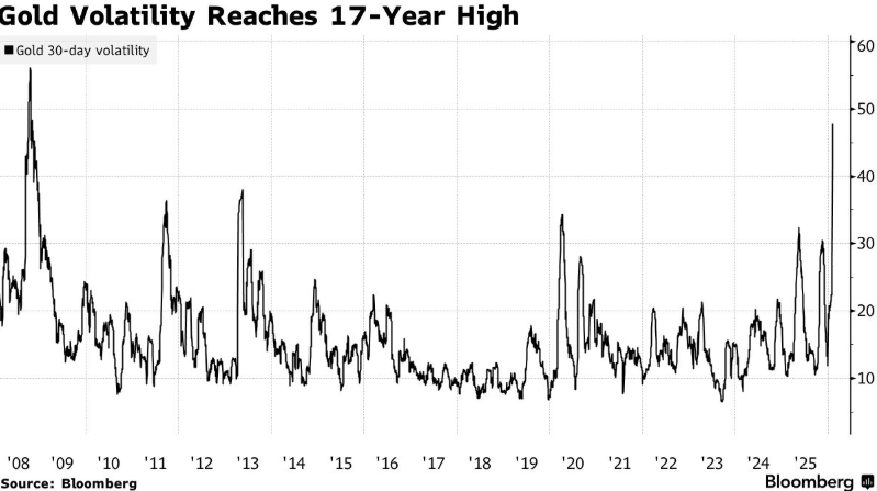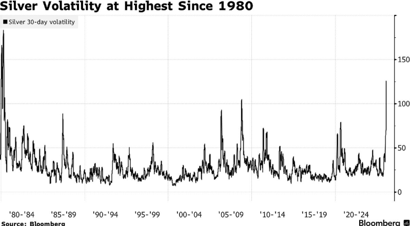 根据一项波动率衡量指标,金价目前的波动程度已超过2008年金融危机高峰以来的任何时期。与此同时,白银正经历着自1980年以来最剧烈的市场动荡。