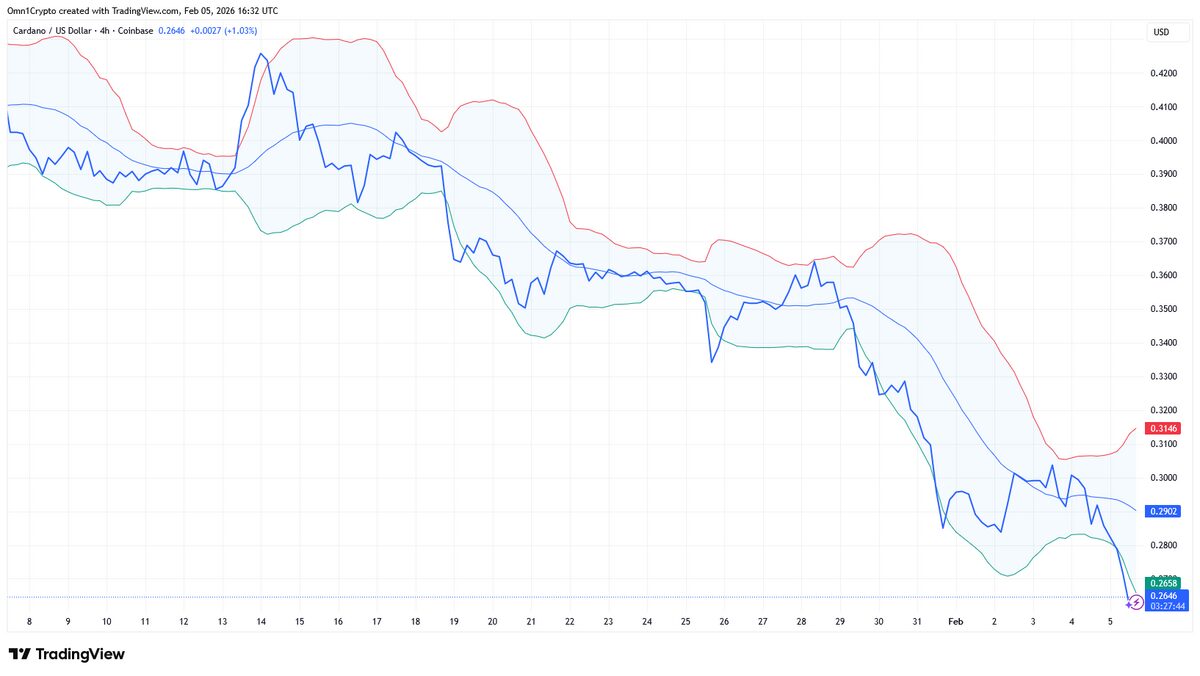 布林带(BOLL)指向0.29美元&0.31美元卡尔达诺持有者应密切关注以下关键价位。然而,如果当前0.26美元该区域无法维持,向自由落体式坠落0.20美元这就发挥了作用。在投机市场上,Cardano 的多头彻底失败——571 万美元清算金额中的 531 万美元是由于过度杠杆的长期交易造成的。