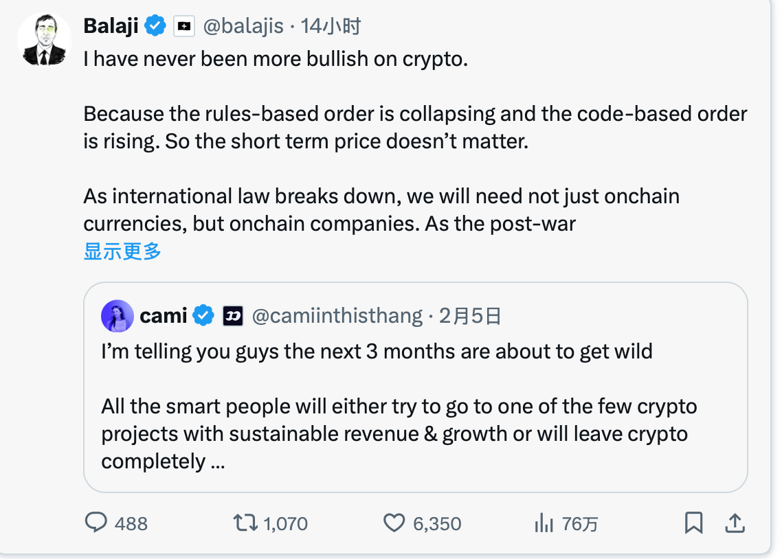因为“基于规则的秩序”正在崩塌,而“基于代码的秩序”正在崛起。所以短期价格根本不重要。