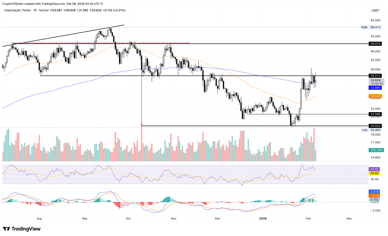 HYPE/USDT 日线图。
