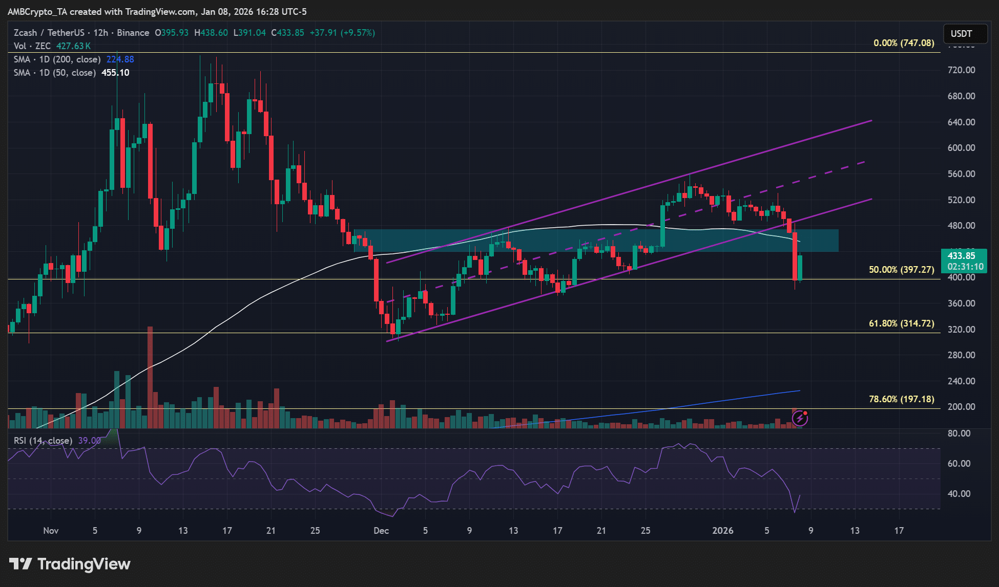 最初,由于市场错误地将此次更新解读为核心开发者完全放弃了该协议,ZEC 代币价格从 490 美元暴跌 22%,跌至 381 美元的低点。