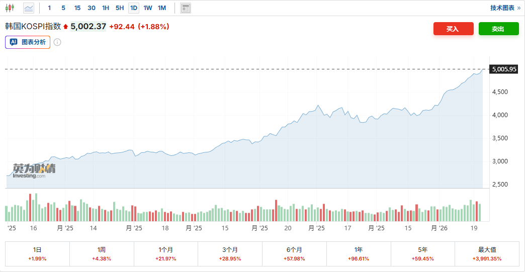 当韩国股市基准指数Kospi站上5000点,一个此前更多被视为周期性出口市场的经济体,正在被资本重新定价。