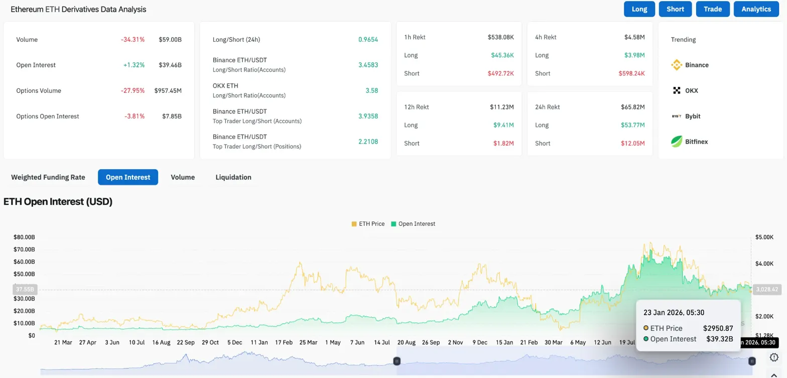 期货市场呈现出更为谨慎的态势。未平仓合约量增长1.32%至394.6亿美元,但成交量却下降34.31%至590亿美元。这种背离表明,投资者更倾向于维持现有仓位,而非建立新的仓位。