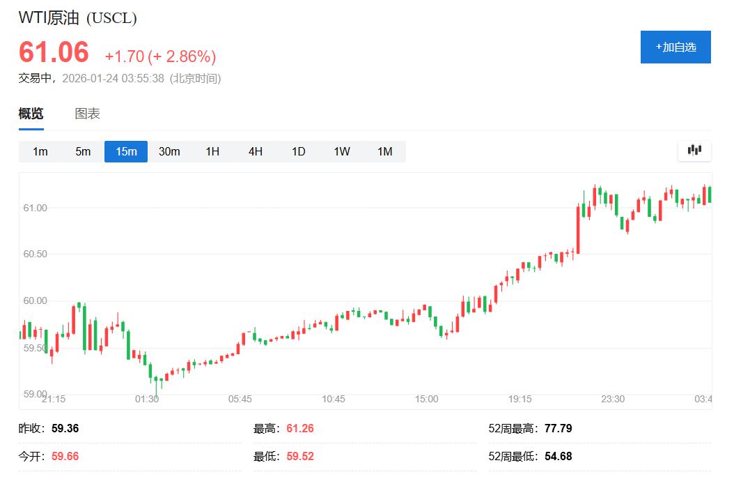 继周四晚美国总统特朗普宣布调集美军舰队前往伊朗后,本周五又传出美国威胁限制伊拉克出售石油所得美元收入的消息,据称美方企图迫使伊拉克新政府排除伊朗支持的武装团体。这一系列举措推动国际原油期货价格周五全天保持涨势。美股早盘刷新日高时,美国WTI原油靠近61.30美元,布伦特原油涨至66美元上方,日内分别涨约3.2%和3.1%。