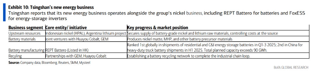 青山的业务基石依然是不锈钢和镍,其“矿山-材料”的一体化战略极具杀伤力。研报称: