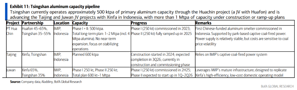 研报指出,美银预计这些新电力设施要到2027年中期才能完工,这意味着实际产量贡献可能会滞后于名义产能规划。尽管如此,随着铝利润率回升,这一布局显示了青山在基础材料领域的扩张野心。