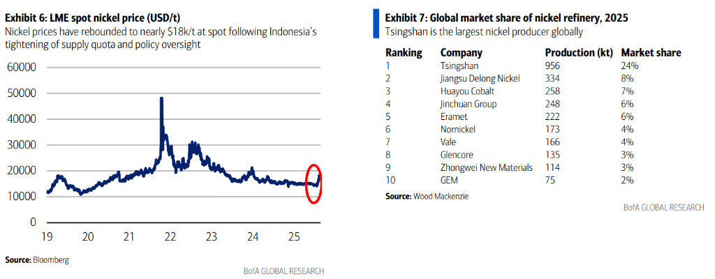 研报指出,随着印尼收紧供应配额及加强政策监管,现货镍价近期反弹至近18000美元/吨。作为全球占据25%-30%市场份额的镍业霸主,青山集团的一举一动将对价格走向产生关键影响。