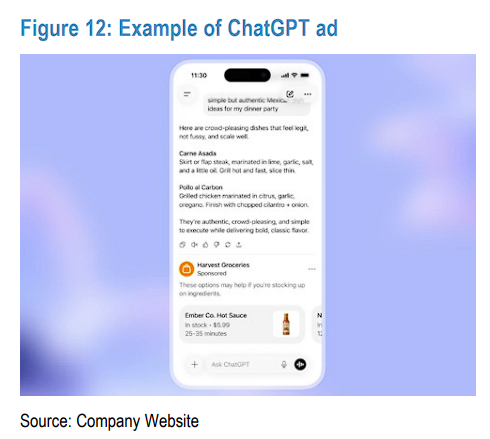 同时,摩根大通认为,作为首个在消费级应用中测试广告的主流大语言模型提供商,OpenAI的举措可能影响其用户增长率和竞争地位,但公司的管理纪律、品牌认知度和用户粘性将支撑其度过测试期。