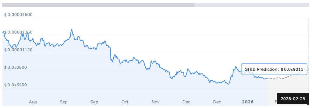 Shiba Inu 目前的价格为 0.000007675 美元,过去 24 小时内下跌了 2%。CMC 数据显示,该资产在过去一年中已下跌 54%,目前正处于历史低位附近。但由于市场尚未对其他加密货币(山寨币)表现出强劲的复苏势头,该代币也展现出明显的复苏迹象。