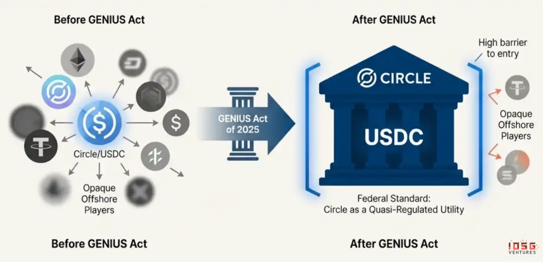 3. 监管基础设施:Circle 已获得 55 个监管牌照,是目前最合规的稳定币,构建了坚固的合规护城河。在美国,像《Genius Act》这样的法案以及清晰的监管框架为 Circle 提供了巨大的合规确定性,这是许多其他加密公司所不具备的。