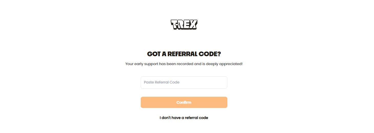 STEP 1. 进入交互网站(链接:https://www.trex.xyz/auth/portal-login),创建账号,并输入邀请码 7DMAZO4Z 进入。