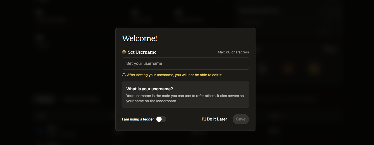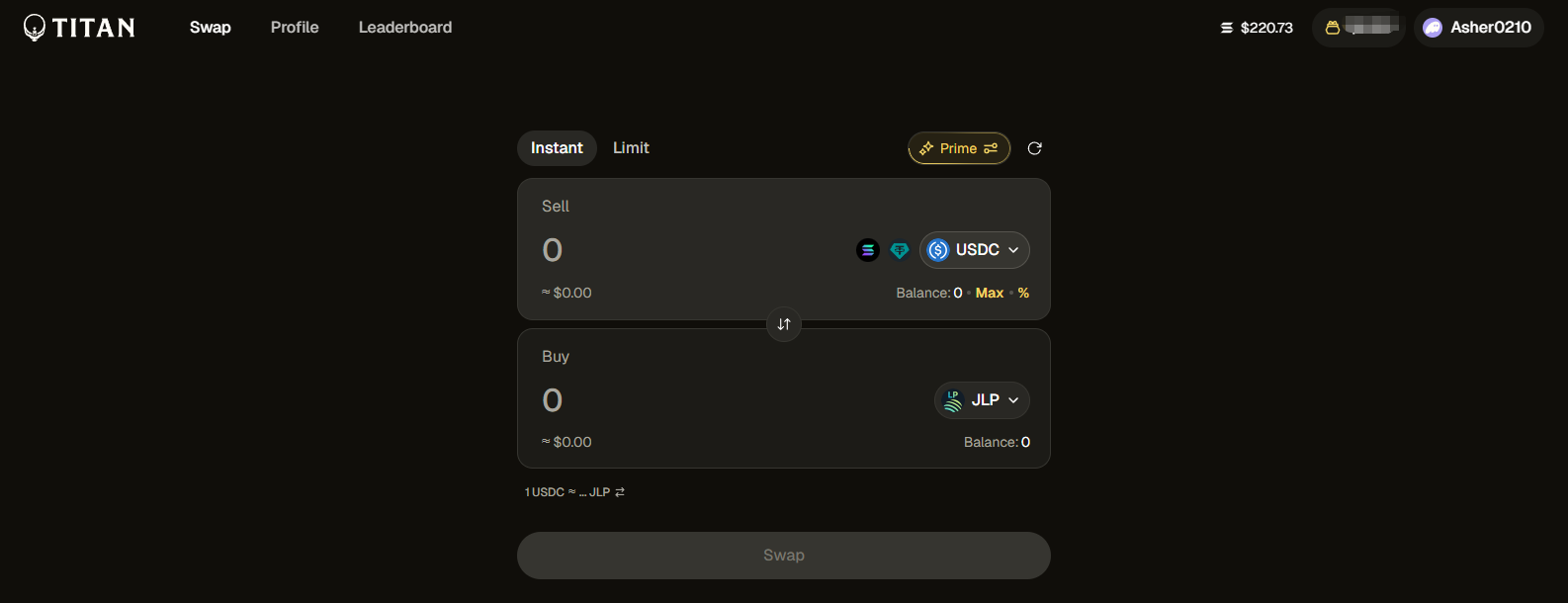 STEP 1. 进入交互网站(链接:https://app.titan.exchange/),连接 Solana 生态钱包后,设置昵称。