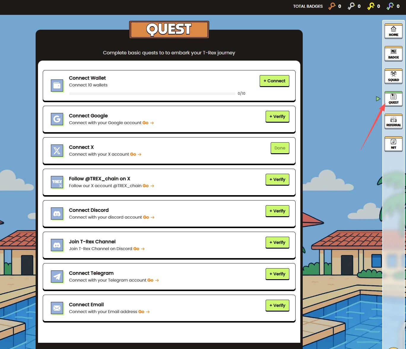 STEP 4. 点击右侧的“BADGE”,完成对应任务解锁对应徽章。