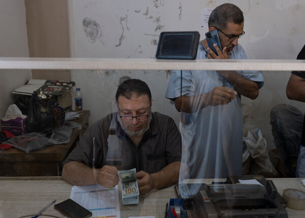 当柜员确认总额并取出现金后,农民哈拉·马哈茂德·阿尔马哈茂德如释重负地笑了,停下来表示感谢。她问道,这种技术是从哪里来的呢?