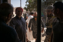 22岁的阿卜杜勒·哈利姆·哈桑和阿尔马赫穆德女士在叙利亚的货币兑换处排着队等着兑换货币。他说,他曾幻想有一天能像使用普通银行账户一样使用HesabPay,安全地接收资金、支付款项和存款。但就目前而言,HesabPay卡已经足够让他获得战后重建生活所需的资金。
