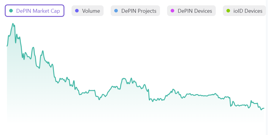 DePIN 项目总市值已跌破90亿美元,远低于2024年底超过430亿美元的峰值。来源:DePINscan
