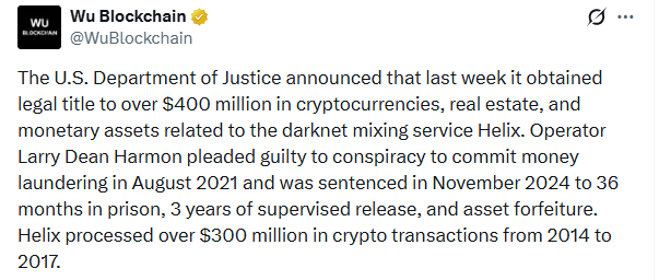 美国司法部于2026年1月29日宣布,经过漫长的调查,已正式获得超过4亿美元资产的合法所有权,这一里程碑式的判决标志着案件的最终解决。这些资金与臭名昭著的Helix暗网混合器有关,该服务曾被网络犯罪分子用于掩盖其踪迹。根据联邦法院1月21日的命令,此次没收行动最终完成,其中包括大量加密货币、高端房地产和各类银行存款。这一消息标志着联邦当局在打击支持网络犯罪的数字基础设施方面取得了重大胜利。