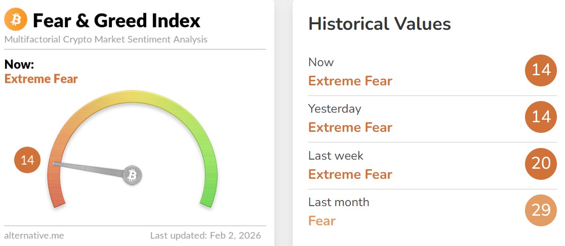 与上个月相比,市场情绪显著恶化,恐惧与贪婪指数降至 14。尽管总市值有所上升,但交易模式表明市场采取防御性策略,对山寨币的利润较为挑剔,并且对大盘股的风险规避情绪持续存在。