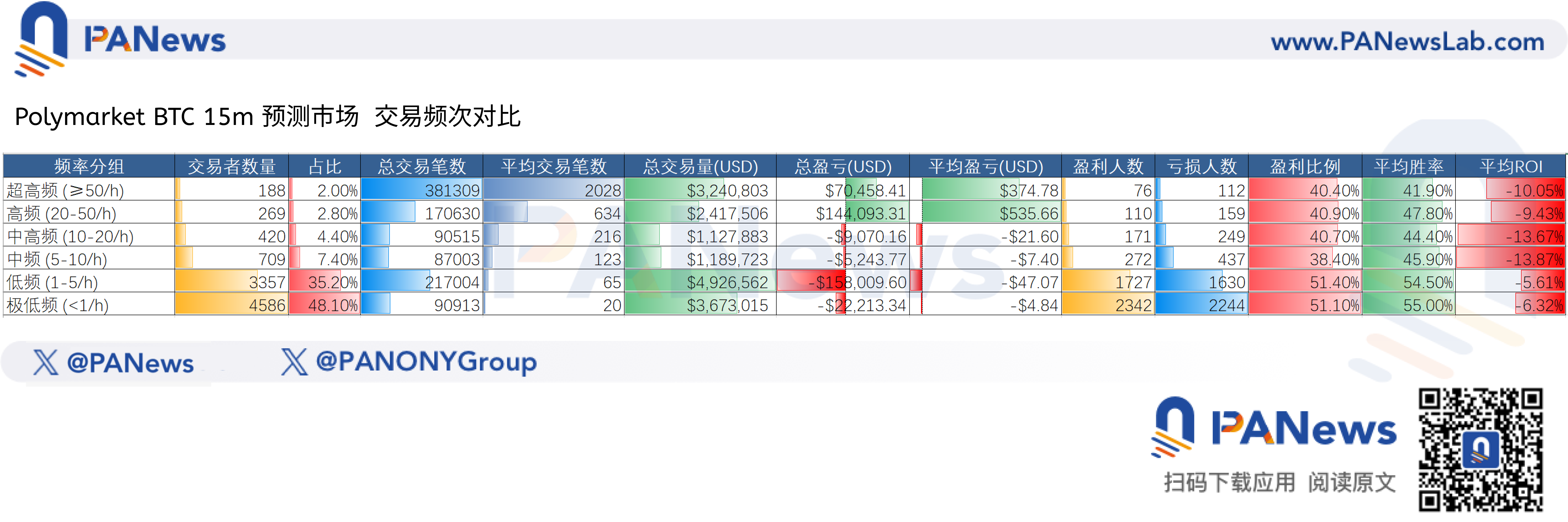 近日,PANews 分析团队对近期比特币15分钟涨跌预测市场进行了全量数据复盘。在涵盖约3天、291个短期市场、总计105万笔交易的庞大数据库中,我们看到的不止是冰冷的数字,而是一场算法与人性赤裸裸的博弈。