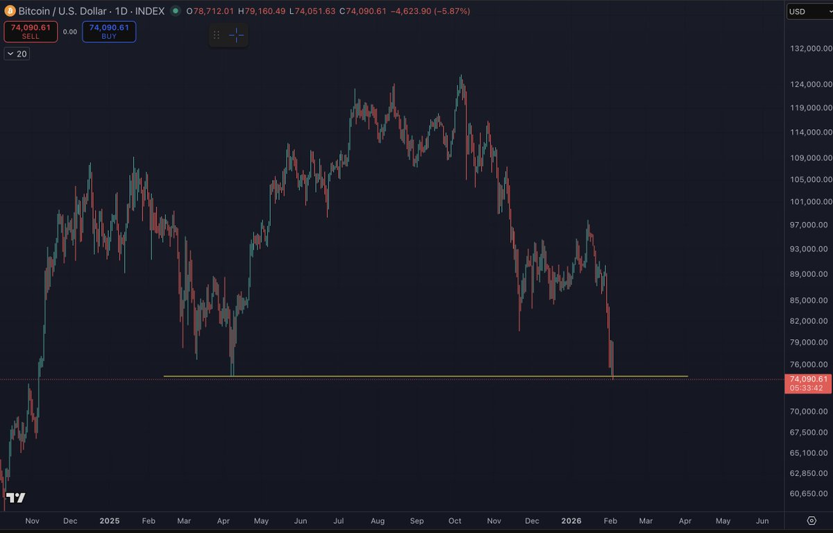 “比特币刚刚跌破了2025年4月的低点。如果它不能很快反弹,今年中期将会非常艰难。如果它能反弹,就能给我们几个月的时间,让我们在接近10月份的时候避免太多的价格波动(这很可能就是价格的底部)。