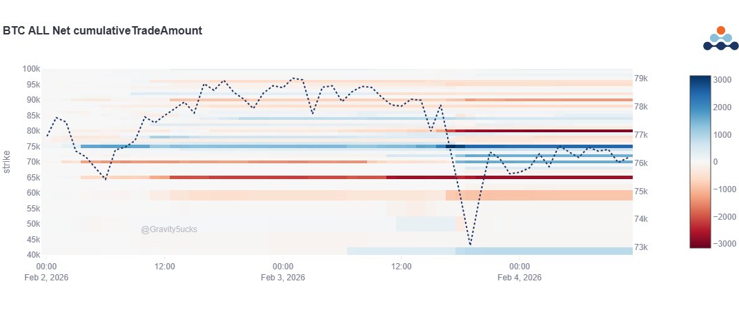 图表显示,在 7 万美元、6.5 万美元和 6 万美元的行权价附近,看跌期权的买盘有所增加,这表明一些玩家预期比特币价格会跌破 7 万美元。