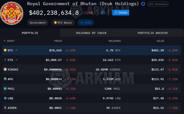 本周,不丹王国政府在数字资产市场采取了一项大胆举措。一项涉及约284.8枚比特币的战略性不丹比特币出售计划已得到确认,总价值达2240万美元。此次清算分两部分进行。首先,不丹王国于1月30日转移了100.8枚比特币;随后,于2026年2月4日转移了另外184枚比特币。区块链数据显示,这些资金流向了做市商QCP Capital。比特币价格波动维持在7.1万美元以上。许多投资者现在正密切关注这个喜马拉雅小国。