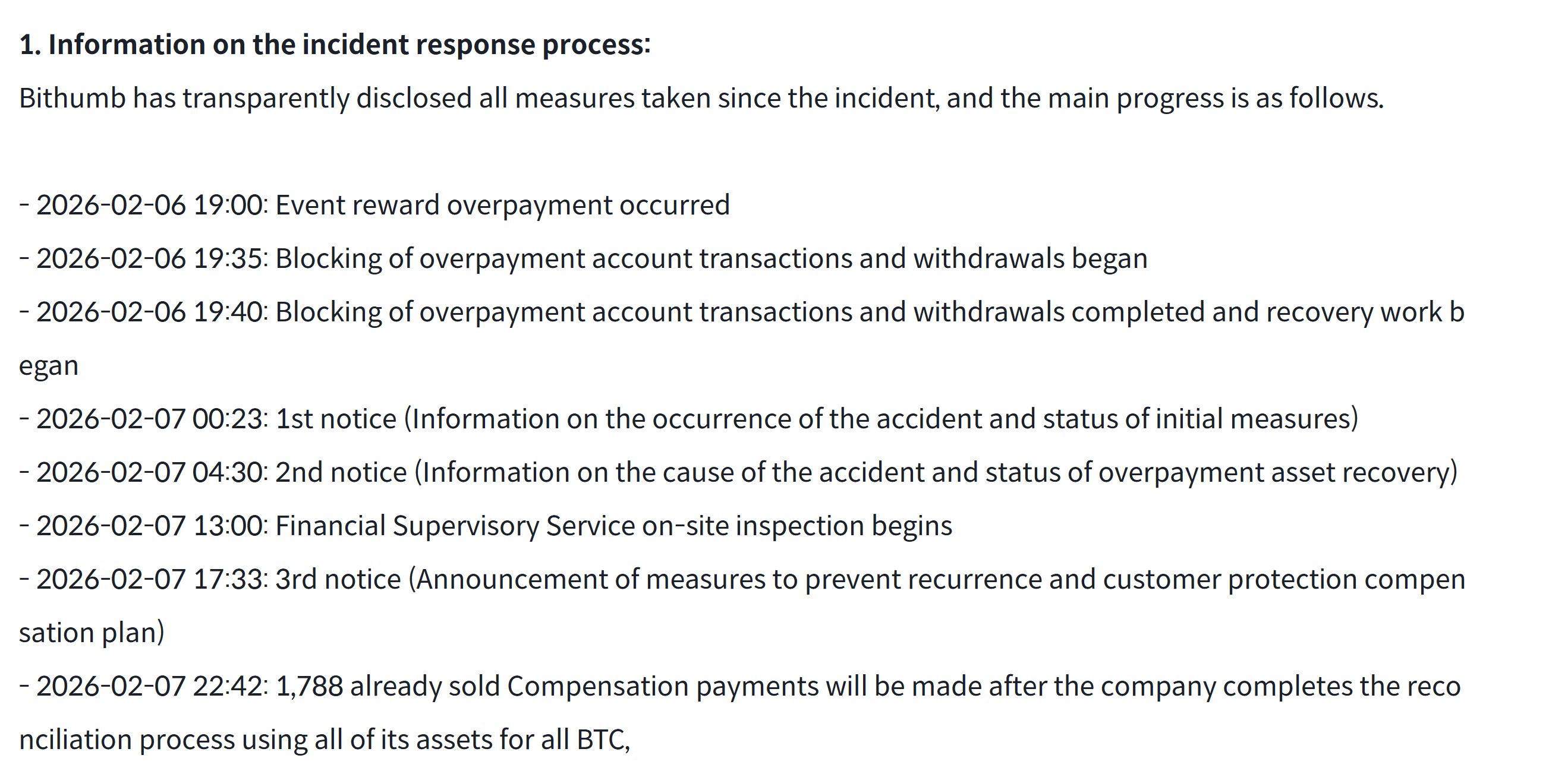 据Bithumb称,大部分误发比特币直接从受影响账户回收,已被抛售进入市场的部分则动用公司储备补足。Bithumb强调,用户资产未受损失,充值与提现均保持正常运作。