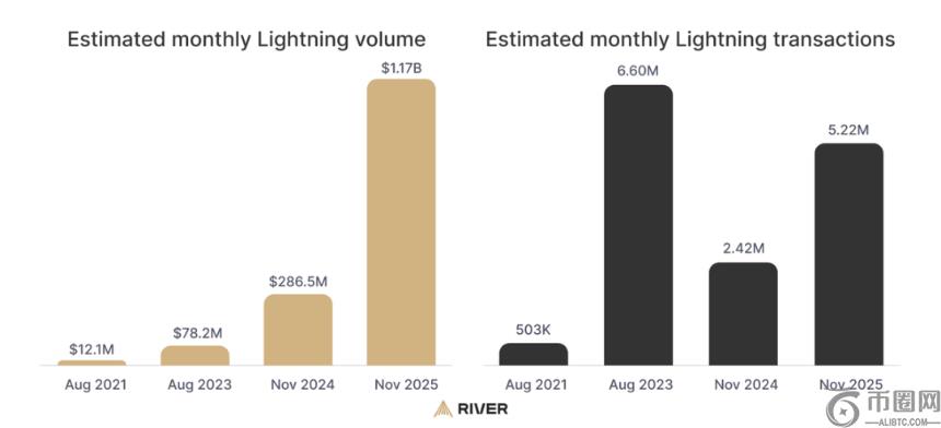 据测算,闪电网络目前月处理交易量已超11亿美元。增长主要来自交易所与商户的自然采用。