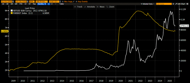 从定义上讲,这一过程就是美联储资产负债表的扩张。尽管官员们可能避免使用“量化宽松”一词,但结果却是一样的:向全球体系注入美元流动性。对于加密货币爱好者来说,美联储每周发布的H.4.1报告中的“外币计价资产”项目已成为全球最重要的数据点。该类别的显著增长证实了美联储正在积极印钞,从而创造了推动比特币等高贝塔风险资产创下历史新高的货币利好因素。