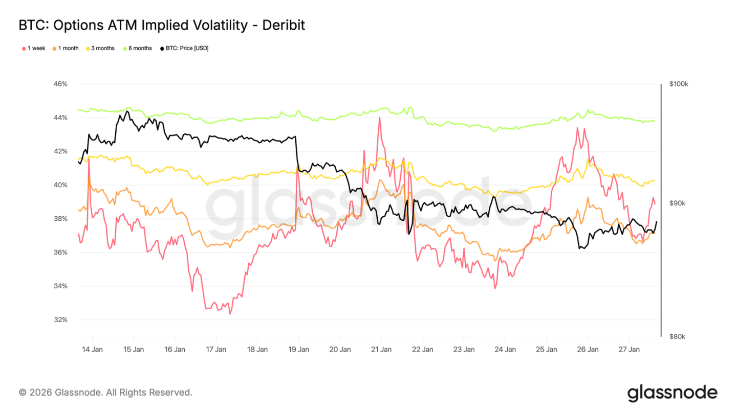 这一变化与地缘政治不确定性上升及宏观风险加剧同时发生,这类风险通常首先影响波动率曲线的近端。波动率重定价主要集中在短期期权,长期期权波动率则保持相对稳定。