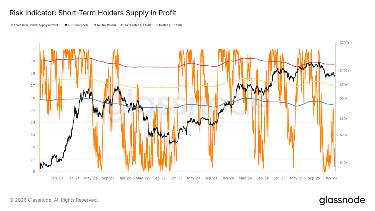 目前,短期持有者的亏损筹码占比已降至 19.5%,远低于 55% 的中性阈值。这表明,虽然下行风险依然存在,但大规模的短期持有者恐慌抛售尚未发生。