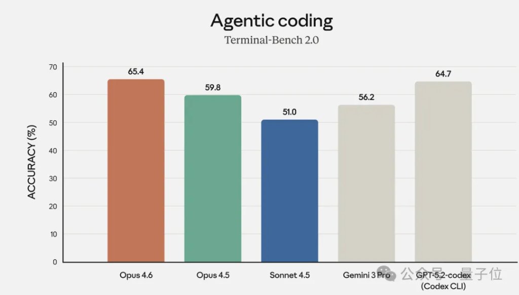 Opus 4.6在Terminal-Bench 2.0中拿到了最高分。