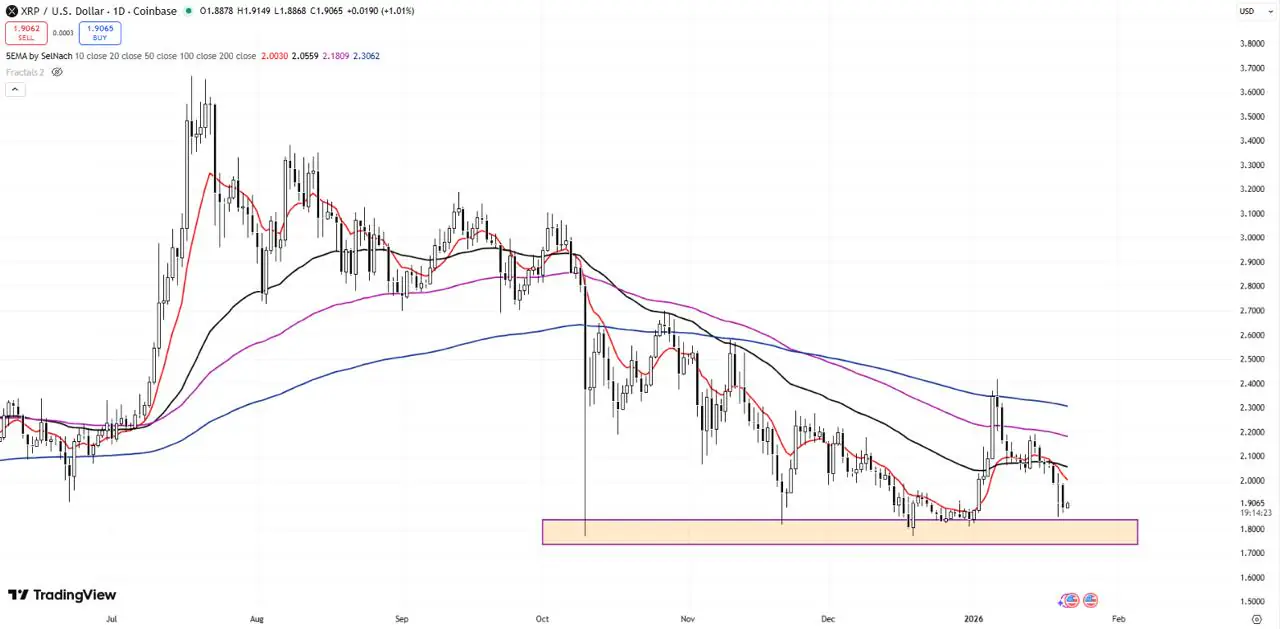 图表说明了一切。XRP 跌破 2 美元并回落至 10/10 影线的底部,是多头最不愿看到的。这种持续下跌的价格走势很可能是由内部人士抛售造成的,即使在当前价格下,XRP 仍然具有上涨空间。市值