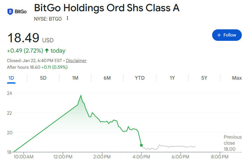 币圈情绪风向标!BitGo上市首日一度大涨