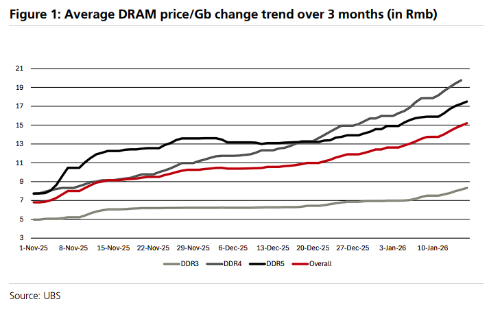 瑞银采用了加权模型(40%入门级8GB内存、20%中端16GB内存、20%高端32GB内存)进行测算,确认了这1300元的混合成本增幅是普遍存在的。