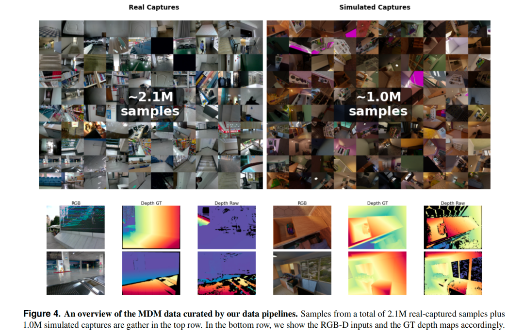 在仿真数据方面,为了模拟真实深度相机的成像缺陷,团队没有简单地渲染完美的深度图,而是在Blender中同时渲染RGB图像和带散斑的红外立体图像对。再通过经典的半全局匹配(SGM)算法生成有缺陷的仿真深度图。