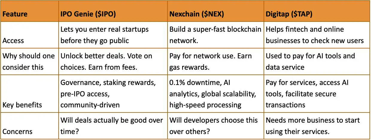 IPO Genie ($IPO) vs NexChain vs Digitap:哪家公司