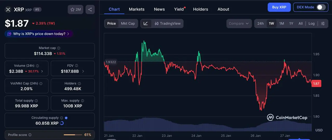市值在保持供应扩张能力的同时,机构投资者获取 XRP 的渠道已显著扩大,超过 8.03 亿 XRP 锁定在交易所交易基金产品中,为投资者提供了传统的金融投资途径。