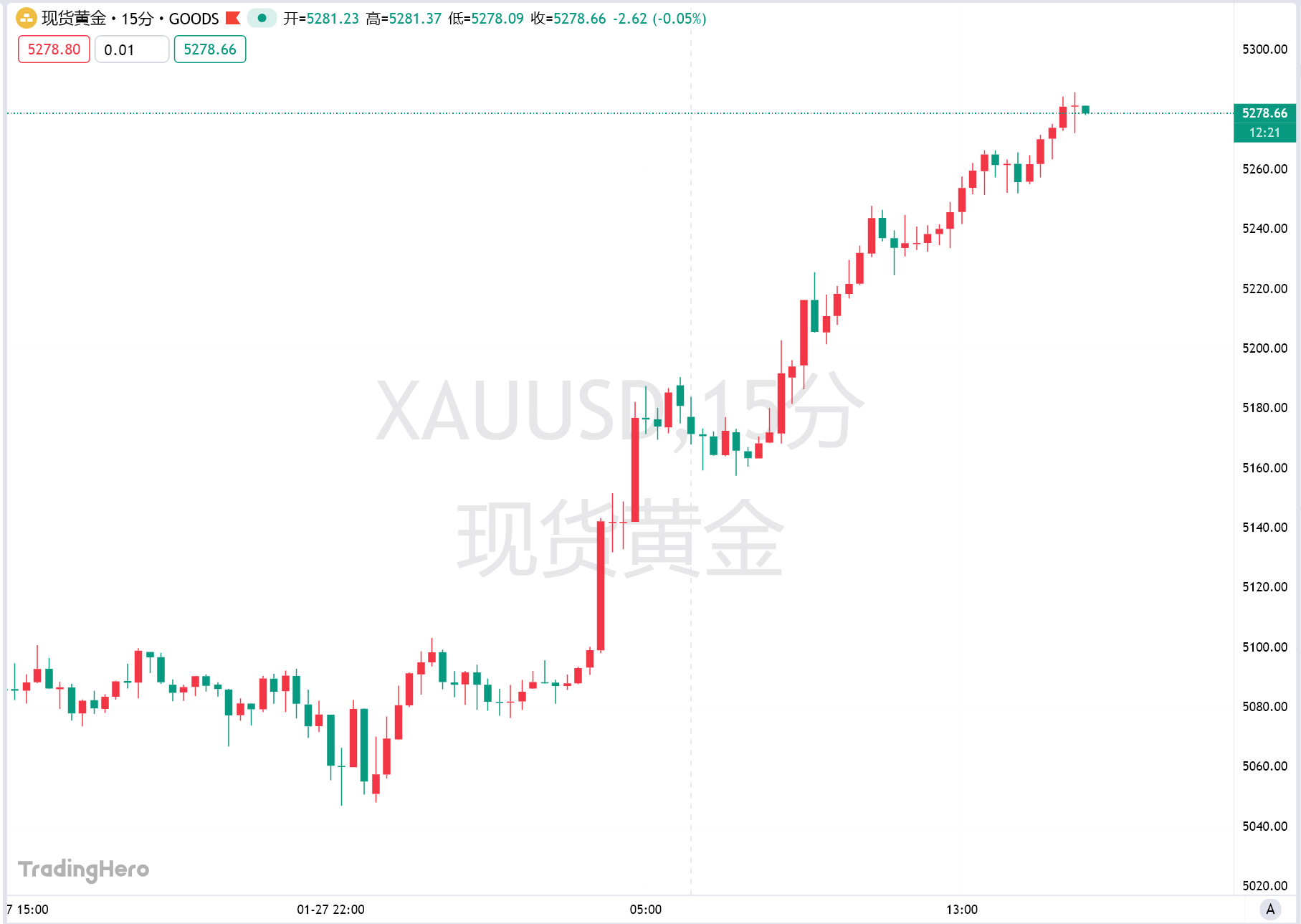 国际现货黄金已然站稳5000美元关口,周三向5300美元/盎司发起冲击,日内涨超100美元。这一贵金属开年便录得超过20%的涨幅,创下1980年以来的最佳年初表现。