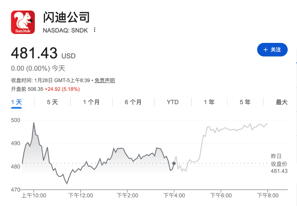 BERNSTEIN SOCIETE GENERALE GROUP(以下简称为伯恩斯坦)最新报告维持了对闪迪“跑赢大盘”的评级,并将目标价定为580美元,这意味着相较于当前约481.42美元的收盘价,仍有20%的潜在上涨空间。