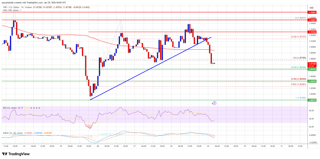 XRP价格未能突破1.950美元,并开始下跌修正,就像……比特币和以太坊价格跌破 1.90 美元和 1.880 美元关口,进入负值区域。